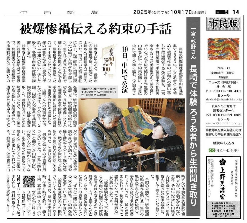 10月17日(金)中日新聞朝刊市内版に手話紙芝居公演の記事をご掲載いただきました。